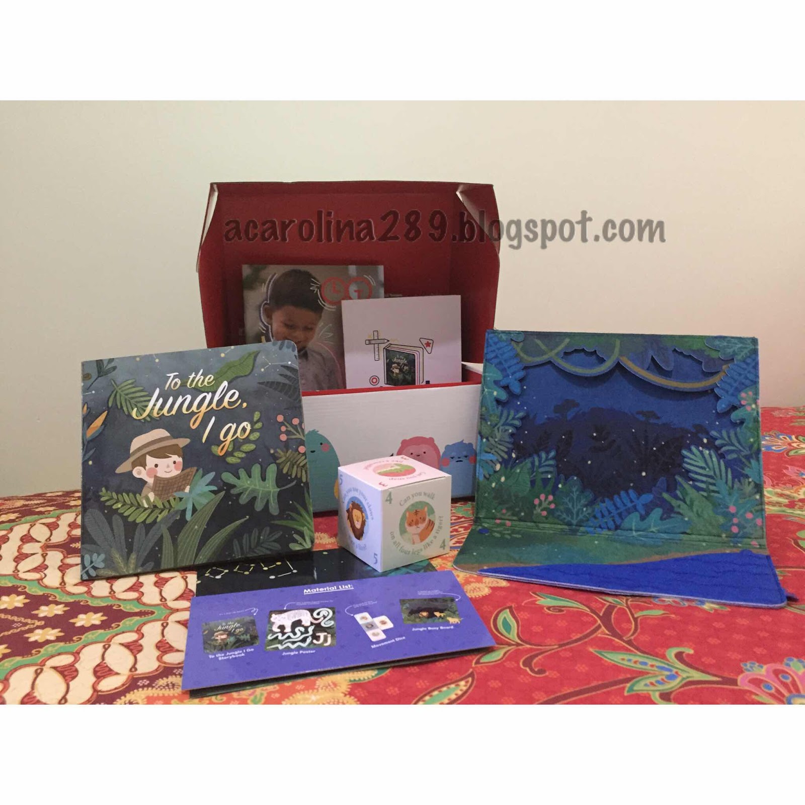 The Jungle terdiri dari 1 buku cerita berjudul ”To the Jungle”, 1 poster untuk tracing, connect the dots, sama coloring, 1 dice untuk belajar animal movement, dan 1 story board gambarnya hutan terus ada banyak hewan yang bisa ditempel di boardnya, kayak dicantolin atau diselipin gitu 😭 sungguh aku pgn cry ngeliatnya krn gemasssh sekali 😭❤️😭❤️.