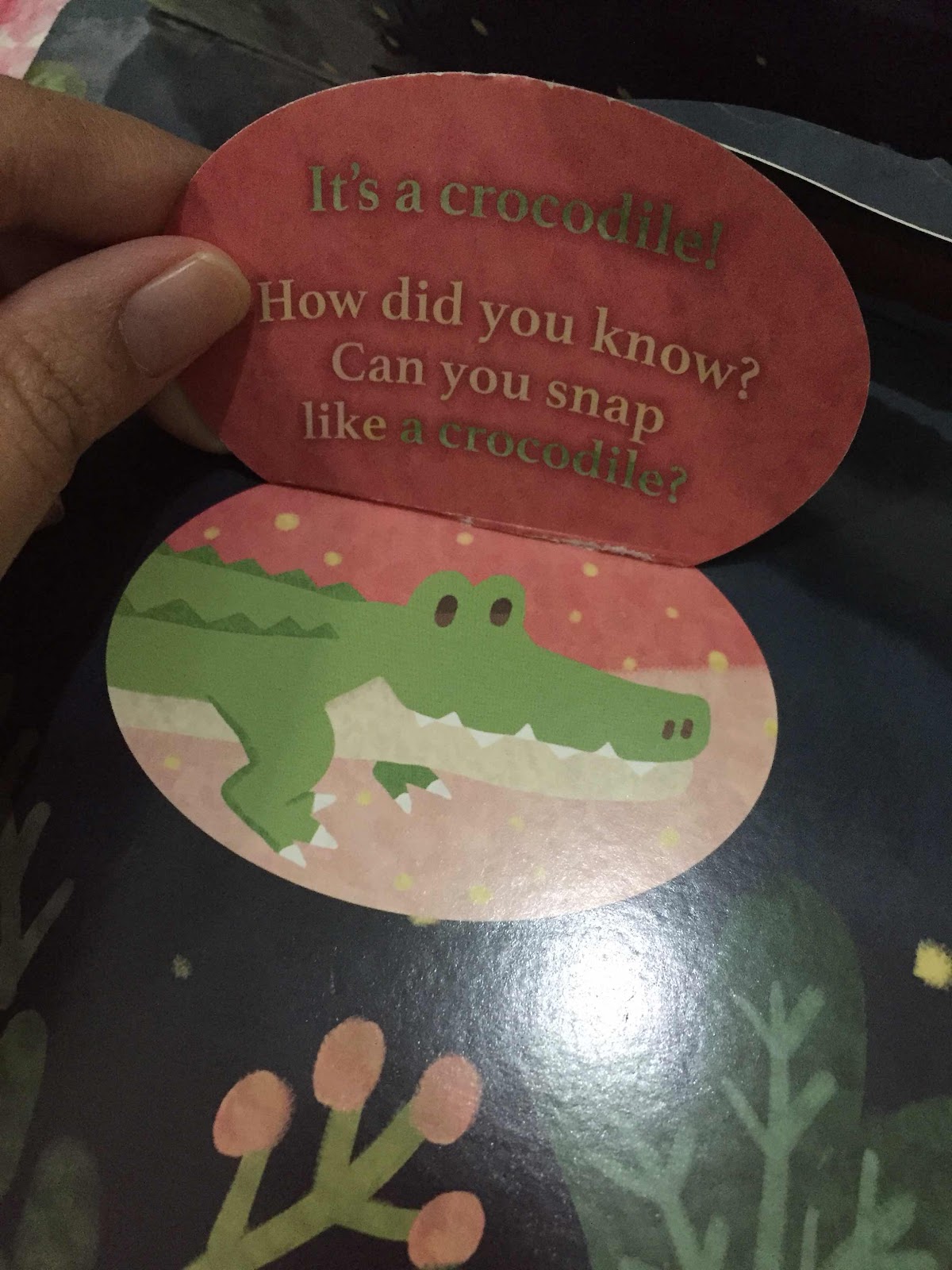 - Habitat pun sekilas bisa dikenalkan dari gambar di story booknya. Kaya contoh bayangan buaya, backgroundnya sungai, duo-duo nya lagi naik perahu.